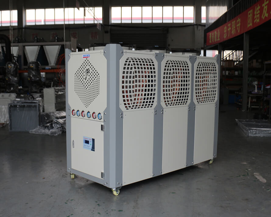 1、風冷式空壓機冷水機:風冷箱式輸出功率從1HP~50HP,風冷螺桿式輸出功率從30HP~200HP;