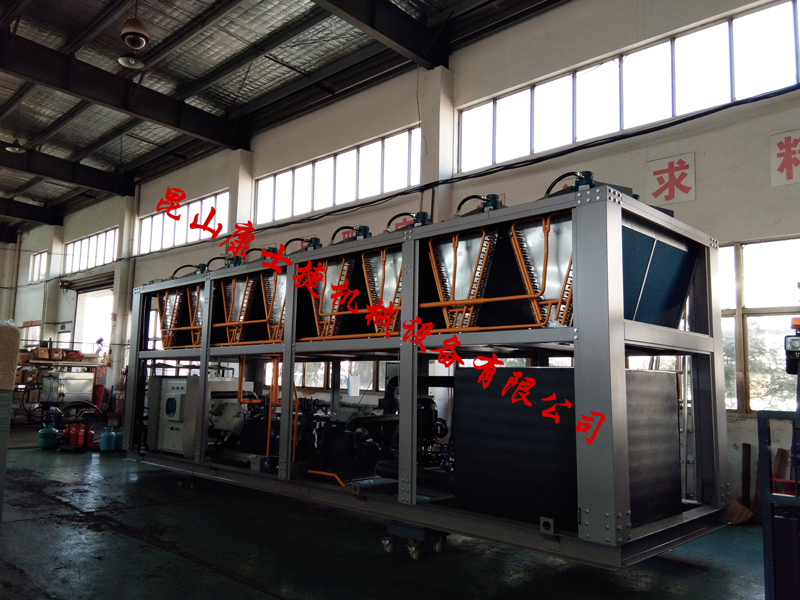 中低溫風冷螺桿式冷水機是一種提供中、低溫載冷劑的制冷設(shè)備,該機組可提供-35-—-5℃一定濃度氯化鈣或乙二醇(溫度低于-25℃時不建議采用)水溶液,可作為各種工藝用冷源的主機。中低溫風冷螺桿式冷水機產(chǎn)品主要由半封閉螺桿壓縮機、經(jīng)濟器、油分離器、水冷冷凝器、蒸發(fā)器及控制系統(tǒng)等幾大部件組成。